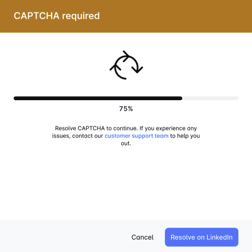 Encountering a CAPTCHA while setting up LinkedIn? 🧩 Simply click "Try by yourself," solve the puzzle, and enter the PIN to complete setup. We’re dedicated to making your Leadsin experience seamless. Enjoy! 🚀