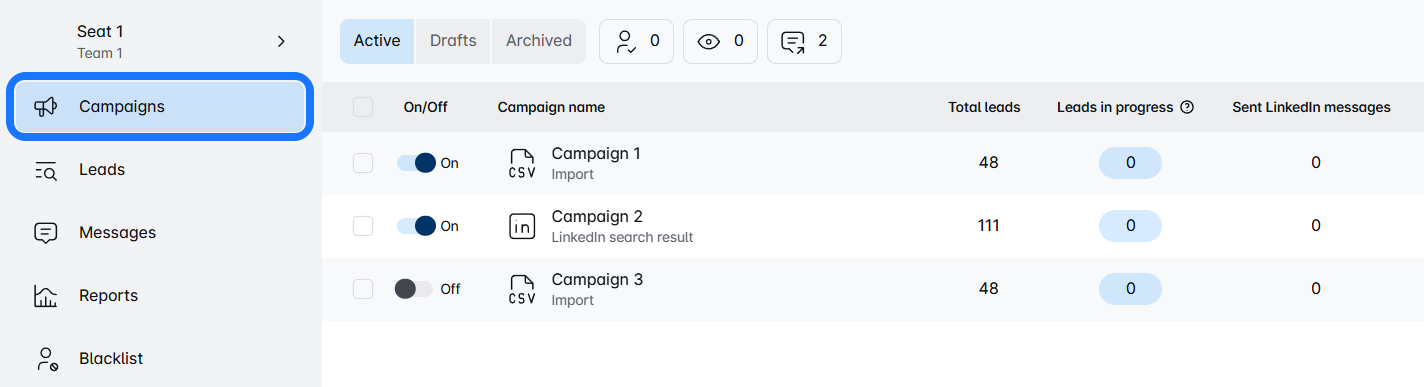 Start by logging into your Leadsin account and heading over to the Campaign Dashboard.