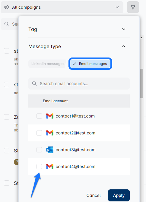When using the Campaign Filter, if you've chatted with a lead across different channels like LinkedIn, Sales Navigator, or Email, the Smart Inbox lets you effortlessly switch between these channels right within the inbox. It’s like having a remote control for your conversations!