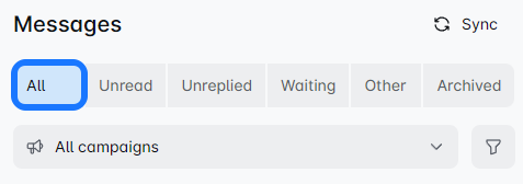 Once you connect your LinkedIn profile to the Leadsin, this filter shows your non-campaign-based messages. ❗ Messages sent before connecting your account won't appear here.