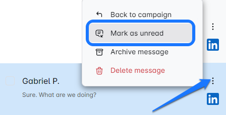 This is the default view of the inbox, where you can see messages from all the campaigns you’ve run on the Leadsin. You’ll also get a glance at messages from all three inboxes that the Smart Inbox merges: LinkedIn, Sales Navigator, and Email 📧.