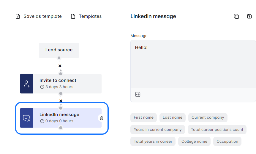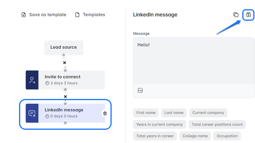 Save time with the Leadsin’s step copy-and-paste feature! Easily duplicate steps like Invites, Messages, or Emails, and customize them in sequence. Save key steps as templates in the Template Library for future campaigns. Streamline your workflow and boost efficiency! 🚀 Need help? We’re here for you.
