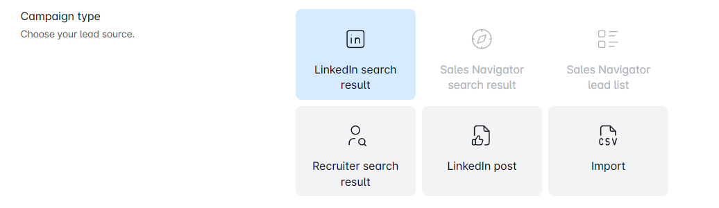 Leadsin's smart enough to recognize the type of connection and campaign based on your previous choices!