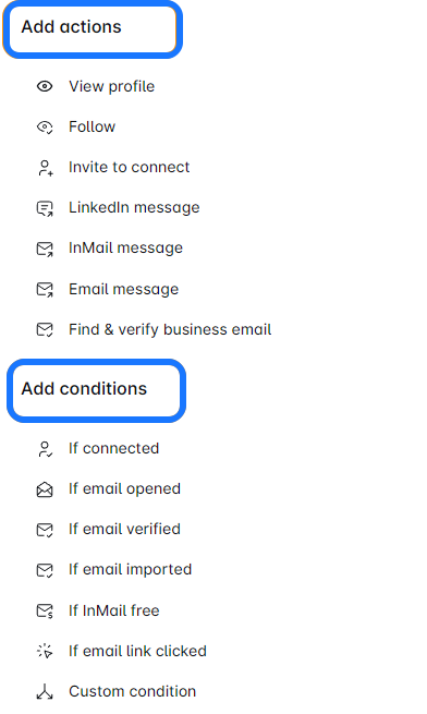 Ready to level up your outreach? Leadsin’s Smart Sequence feature lets you create dynamic campaigns step-by-step. Choose your campaign type, build custom sequences with drag-and-drop tools, and set targeted actions and conditions—all to elevate your networking. Ready to drive results? Start crafting dynamic campaigns today and make every interaction count! 🚀
