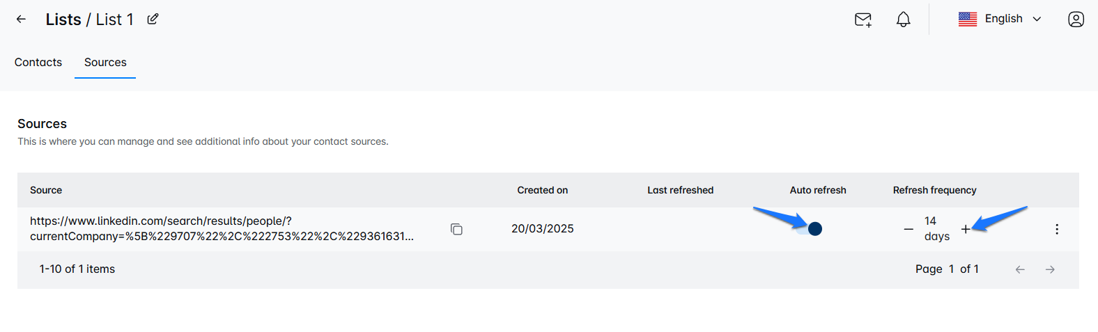 You can also enable the Auto-refresh option and choose your preferred refresh frequency. This way, new leads will be added automatically—no need to trigger the refresh manually. 🔄 Remember, Refresh search only works if you have used a search as a source.