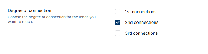 - When you select Search URL, paste your LinkedIn search link into the field. If a connection degree was already selected on LinkedIn, it will be applied automatically. If not, please choose which connection level you’d like to target before continuing.
