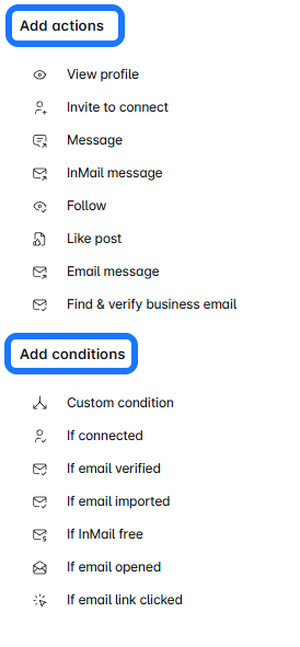 Ready to level up your outreach? Leadsin’s Smart Sequence feature lets you create dynamic campaigns step-by-step. Choose your campaign type, build custom sequences with drag-and-drop tools, and set targeted actions and conditions—all to elevate your networking. Ready to drive results? Start crafting dynamic campaigns today and make every interaction count! 🚀