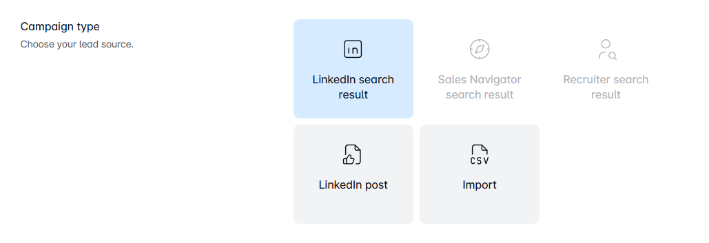 Decide how you want to find your leads—either by using a Search URL or LinkedIn post URL or by uploading a CSV file.